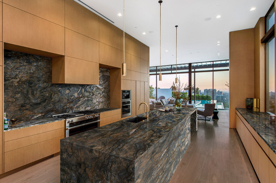 Large format tiles create a sleek and contemporary look in your kitchen. They have fewer grout lines, which can make your backsplash appear more seamless and uniform. These tiles are available in various materials, such as ceramic, porcelain, and natural stone, each with its own set of advantages. Matching the countertop material to the backsplash gives the kitchen an amazing sleek look.